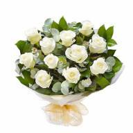 Гармоничный и светлый букет из белых роз и эвкалипта. Композиция легкая и ненавязчивая, навевает воспоминания о весне и рисует в воображении горные луговые пейзажи. Такой букет станет символом чистоты ваших мыслей и чувств. Нейтральная цветовая гамма и сдержанность позволяют прийти с данным букетом как на официальное мероприятие, так и на семейный или романтический праздник.